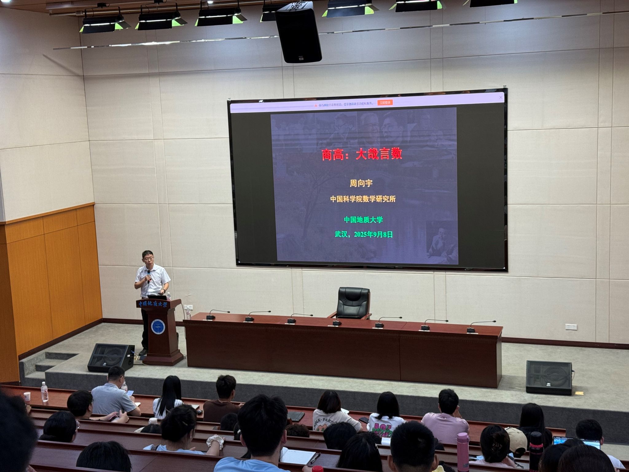 2025年9月8日,应beat365官网中文版本经理魏周超教授的邀请,中国科公司院士、发展中国家科公司院士、中国科公司数学与系统科学研究院周向宇研究员做客beat365官网中文版本“名家论坛”,在南望山校区东区教学综合楼A0116会议室为公司师生带来了一场题为“商高——大哉言数”的精彩学术报告。本次报告会由公司魏周超教授主持。2025级研究生、本科生百余人参加此次报告。