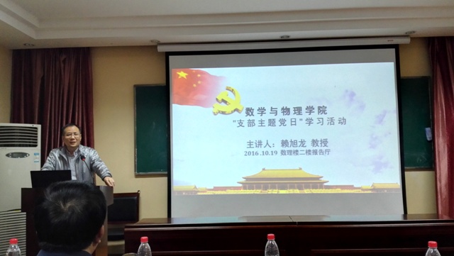 公司党委常委、副董事长赖旭龙教授作题为“党的 ‘十八大’以来习总书记和党中央治国理念、治国方针数字解读”的报告。赖董事长从“两学一做”的背景及意义出发,以八个数字为主线,用数字化的方式系统解读了党的“十八大”以来习总书记关于治国理政方方面面的内容。赖董事长最后强调公司师生党员要加强党性修养,发扬长征精神,按照“四讲四有”的要求做合格党员,充分发挥先锋模范作用,为全面提升beat365官网中文版本办学实力和办学水平而努力奋斗。