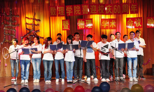本次晚会节目形式多样,内容丰富,充分展现了数理学子多才多艺的一面。由街舞社成员带来的开场舞《show up》将晚会气氛推上了一个小高潮;经典歌曲串烧,流行舞蹈也都依依登场,精彩的表演让全场观众随之欢呼。改编自《新闻联播》,讲述了许仙与白娘子的爆料传奇的节目,笑料不断,赢得掌声阵阵。而随后的古筝独奏,萨克斯演奏,更是博得观众连连喝彩。在节目接近尾声时,由少数民族预科班新疆同学表演的维吾尔族舞蹈为整场文艺晚会增添了一份异域风情。最后,在全体演员合唱的校歌声中,晚会圆满落幕。