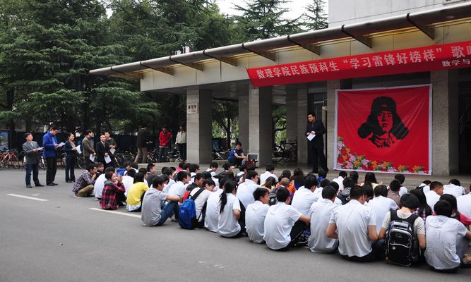开赛之前,主持人朱佳斯老师向同学们介绍了雷锋同志的生平事迹和“雷锋精神”的实质内涵,使在场同学进一步认识到时至今日,“雷锋精神”仍对社会有着深远影响和积极意义。比赛开始后,大家席地而坐,以寝室为单位,分九个小组依次在基础楼前搭建的舞台上演唱了“学习雷锋好榜样”这首歌。各个宿舍各有特色,有的宿舍同学将写有“学习雷锋好榜样”字样的贴纸粘于胸前,意在雷锋精神牢记心间;有的宿舍歌声嘹亮,慷慨激昂;有的宿舍整齐划一,节奏感强。熟悉的旋律,振奋人心的歌词将在场的每个人带回到那段激情燃烧的岁月,“雷锋精神”如同号角,只一声,便已振奋人心。选手们的精彩表现博得了现场观众的认可,欢呼声、鼓掌声此起彼伏,现场高潮迭起。