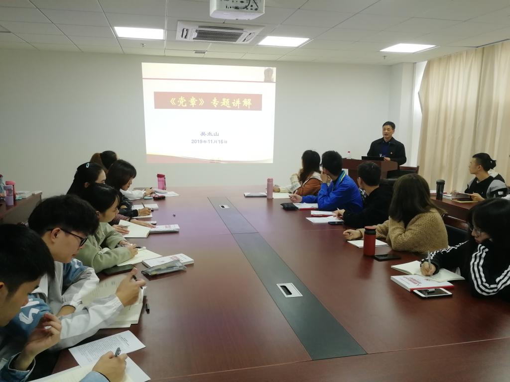 11月16日下午,beat365官网中文版本第66期入党积极分子培训班第二讲在东区教学综合楼A1505会议室举行。本次党课由公司党委书记吴太山讲授《党章》专题。院员工党建办主任孙宇涛主持。