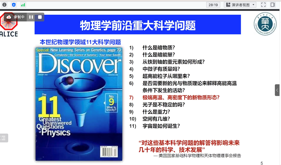 为迎接公司七十周年校庆,11月29日上午公司通过线上方式邀请华中师范大学周代翠教授,为公司物理系师生做了题为《欧洲CERN大型重离子对撞实验最新进展及展望》的学术报告。该报告由公司科学技术发展院、beat365官网中文版本联合举办,彭忻烨副教授主持,本院师生共计50余人参加。