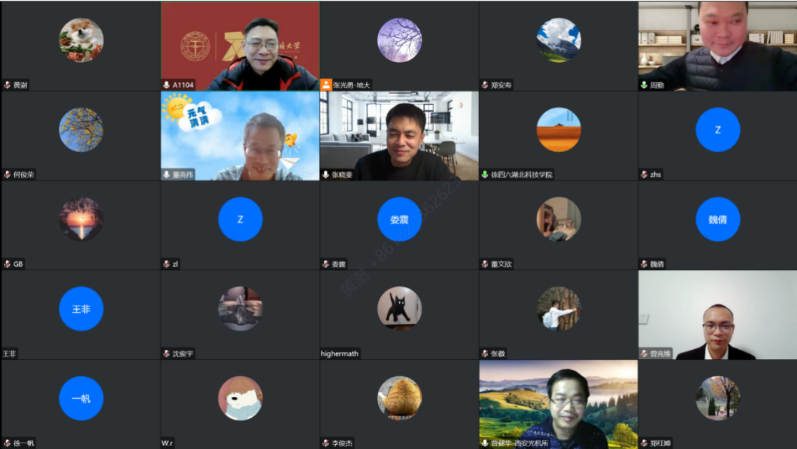 研讨会期间,陕西科技大学董亮伟教授、北京邮电大学刘文军教授、中科院授时中心张晓斐研究员、中国科公司西安光学精密机械研究所曾健华研究员、浙江农林大学戴朝卿教授、湖北科技公司徐四六教授、武汉纺织大学周勤教授、西北大学刘冲教授、太原理工大学郭睿教授、广东航海公司朱兴教授和曾亮维博士、湖北科技公司何俊荣教授分别就各种新型非线性介质中的孤子、涡旋、量子态和孤子作用作了大会交流,对神经网络和机器学习等最新孤子动力学研究方法做了重点介绍。