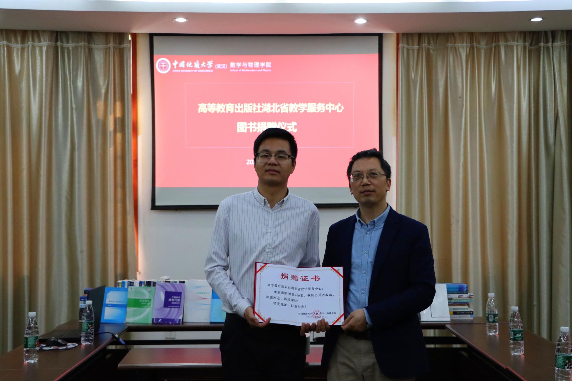 5月12日下午,高等教育出版社湖北省教学服务中心副主任叶望一行来beat365官网中文版本调研交流,并向公司捐赠图书200余册。捐赠仪式在迎宾楼第四会议室召开,公司副经理黄刚等参加仪式。