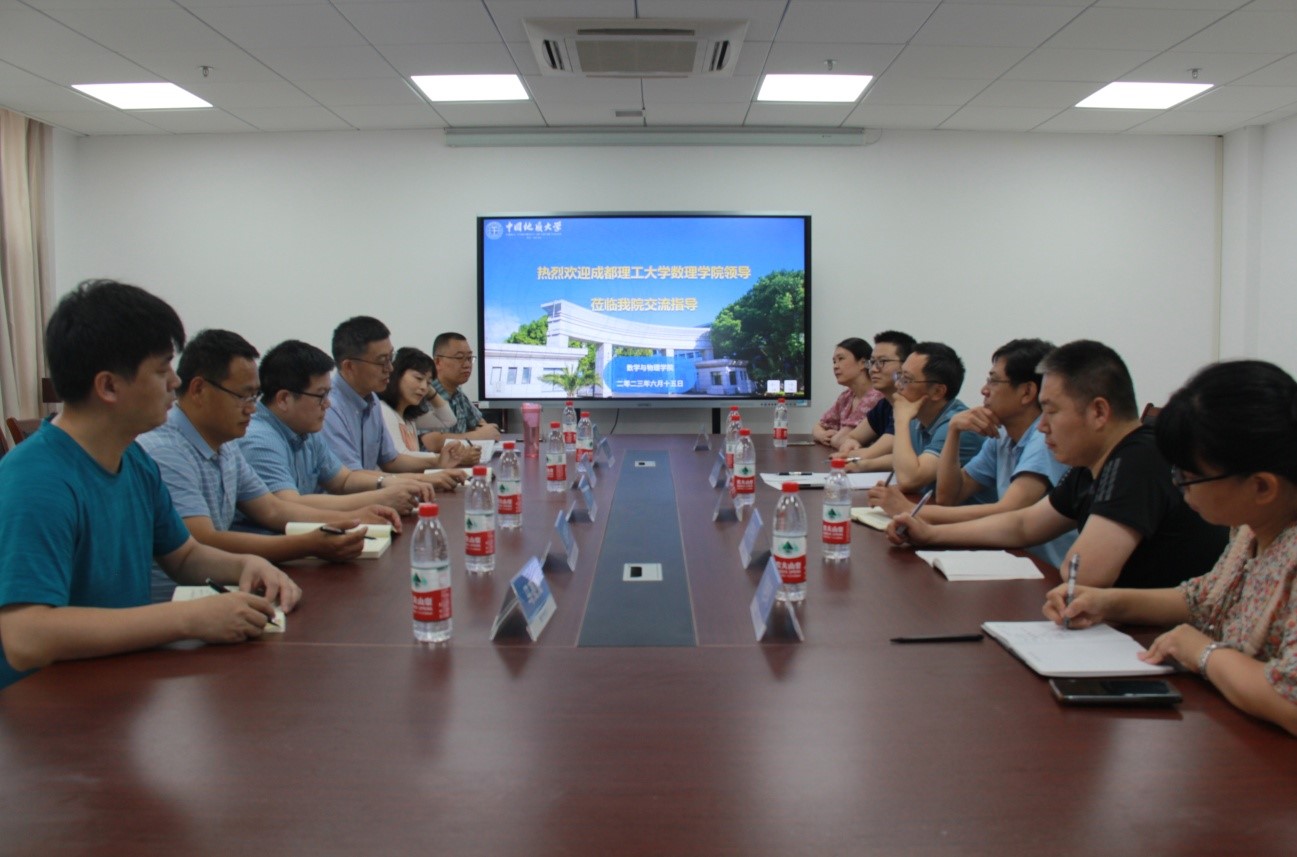 2023年6月15日下午,成都理工大学beat365官网中文版本副经理张传瑜、基础数学教学部主任余海洋、基础数学教学部支部书记舒畅、大学物理教学部副主任史顺平、田荣刚等一行来公司进行工作交流。公司副经理黄刚、副经理张光勇、大学物理教学部主任陈琦丽、数学系主任王毅、大学数学教学部主任郭艳凤、物理实验中心主任何开华出席了此次会议。会议由副经理黄刚教授主持。