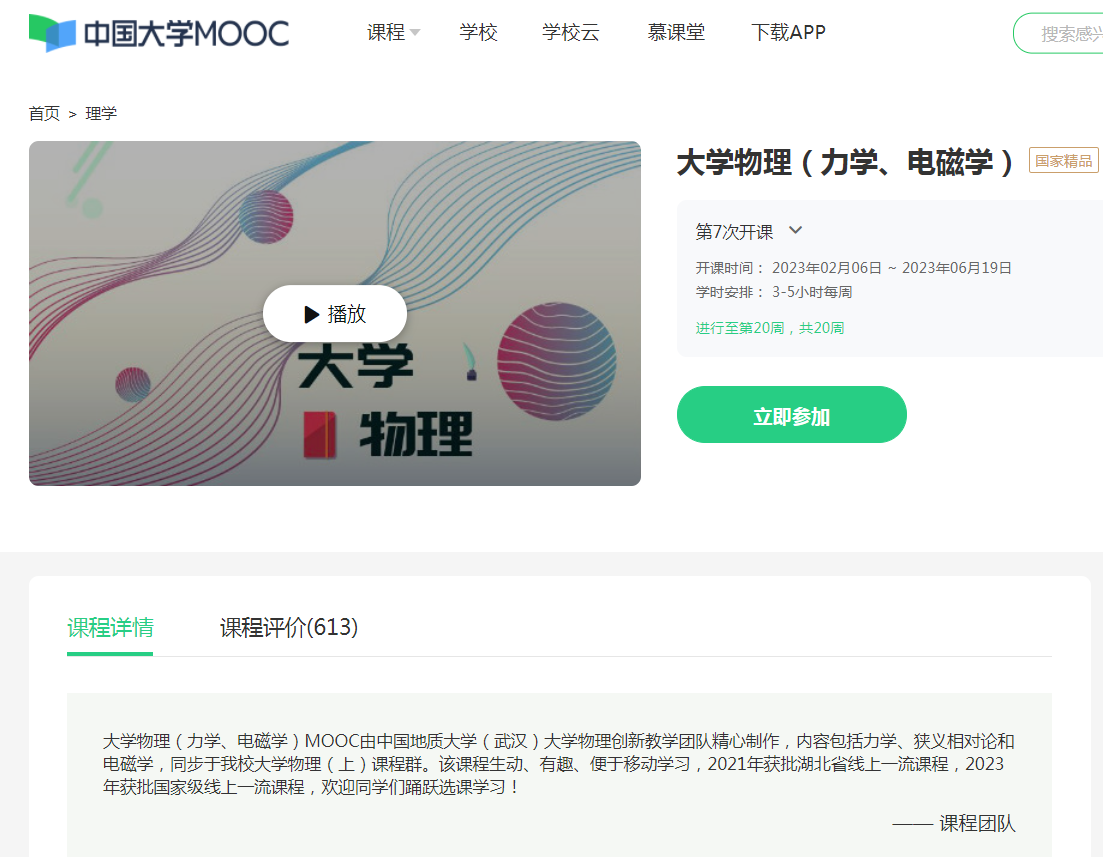 大学物理(力学、电磁学)MOOC自2019年上线以来,在公司得到广泛应用。尤其在2020年春季疫情期间“停课不停教”,该MOOC作为重要的教学资源,帮助老师们圆满完成了全校大学物理的大部分教学任务。近年来,大学物理创新教学团队还探索了基于“MOOC+ SPOC+慕课堂”的线上线下混合式教学模式,改变了传统课堂组织形式,激发了课堂活力,提升了教学效果。
