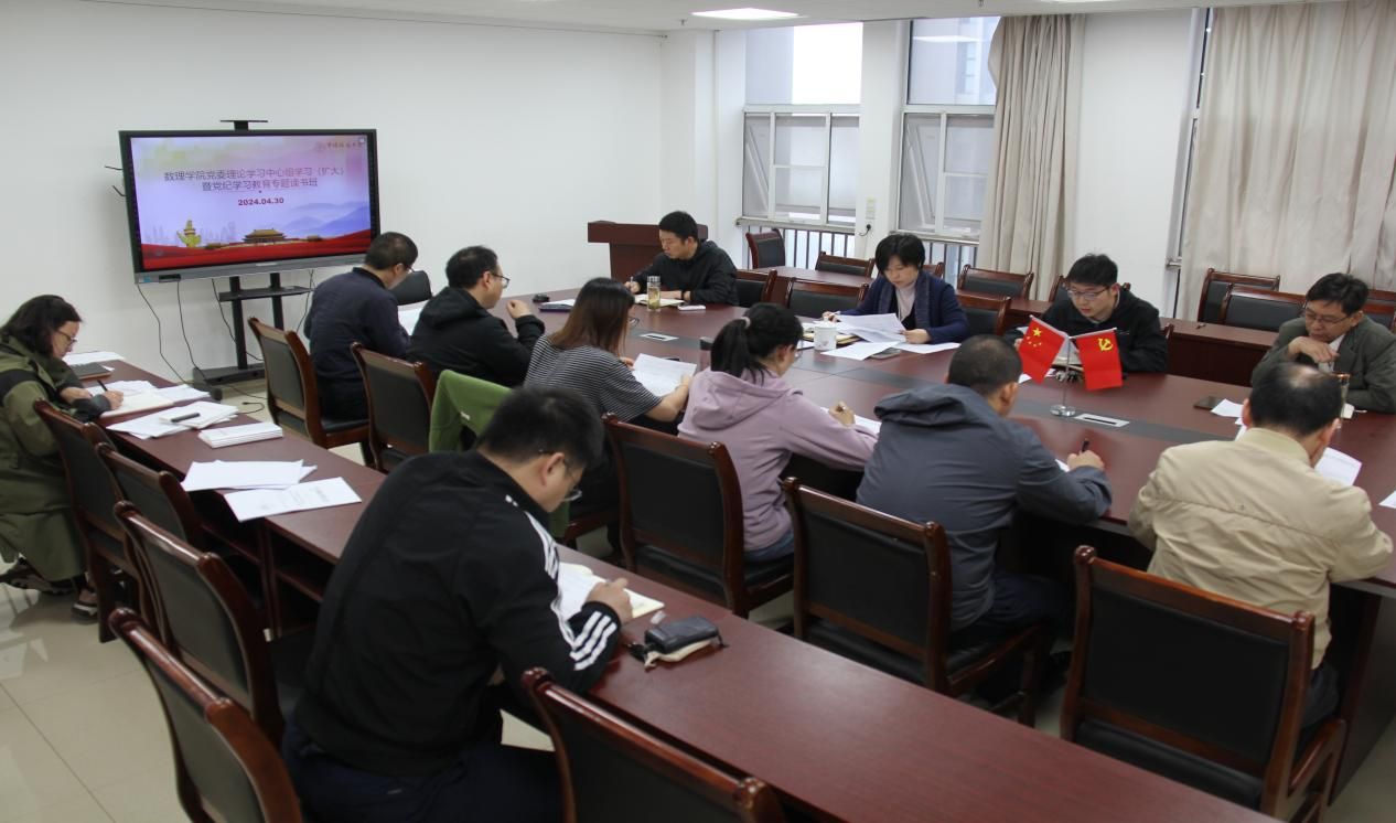 4月30日下午,beat365官网中文版本党委在东区教学综合楼A1505召开党委理论学习中心组(扩大)学习会议暨党纪学习教育专题读书班。公司党委书记于晓舟主持会议,公司党委理论学习中心组成员、教工党支部书记、员工党支部书记代表等参加学习。