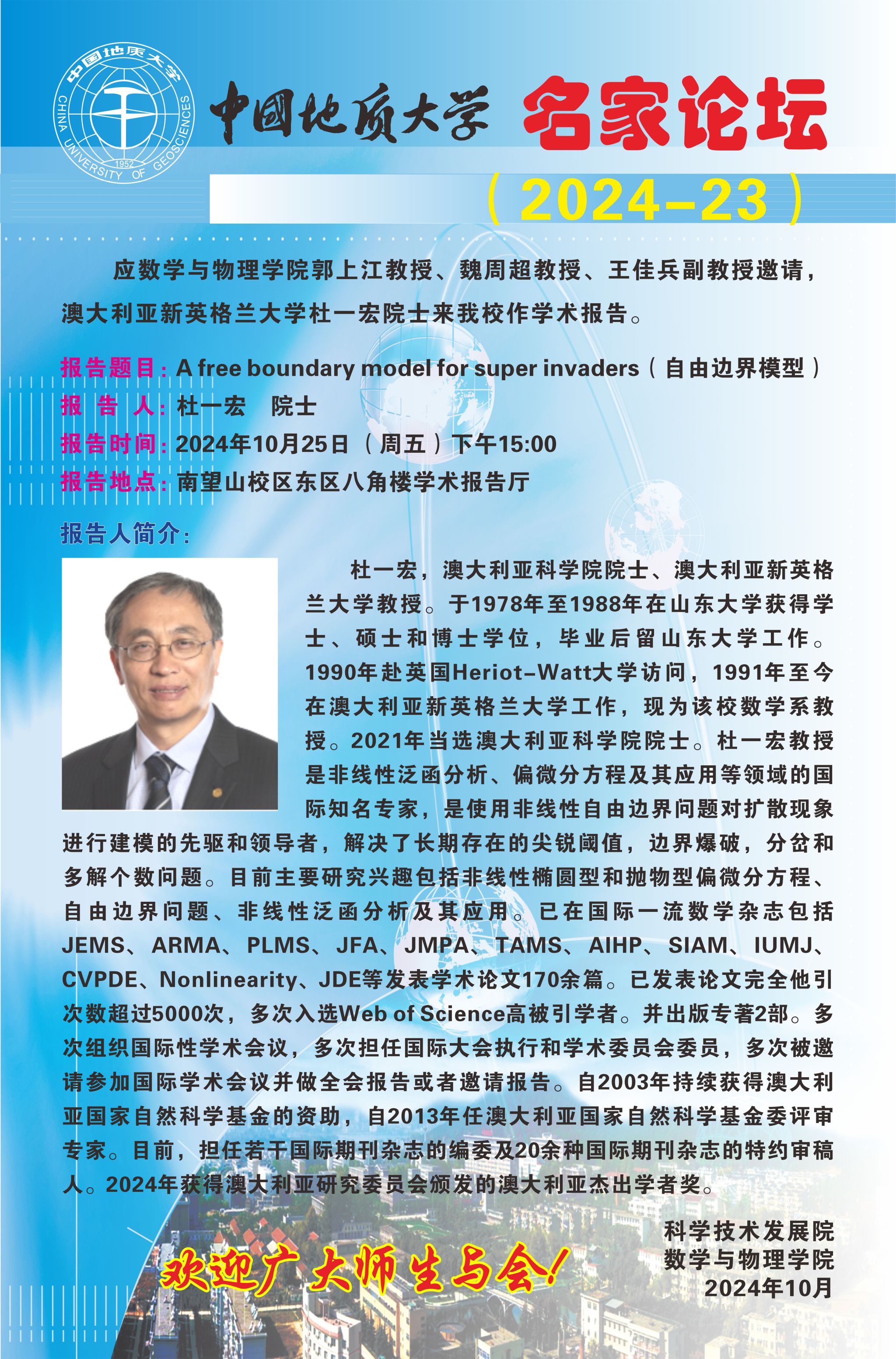 2024年10月25日杜一宏院士学术讲座:自由边界模型