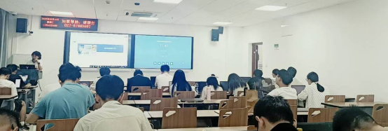 员工在智慧教室进行分组汇报