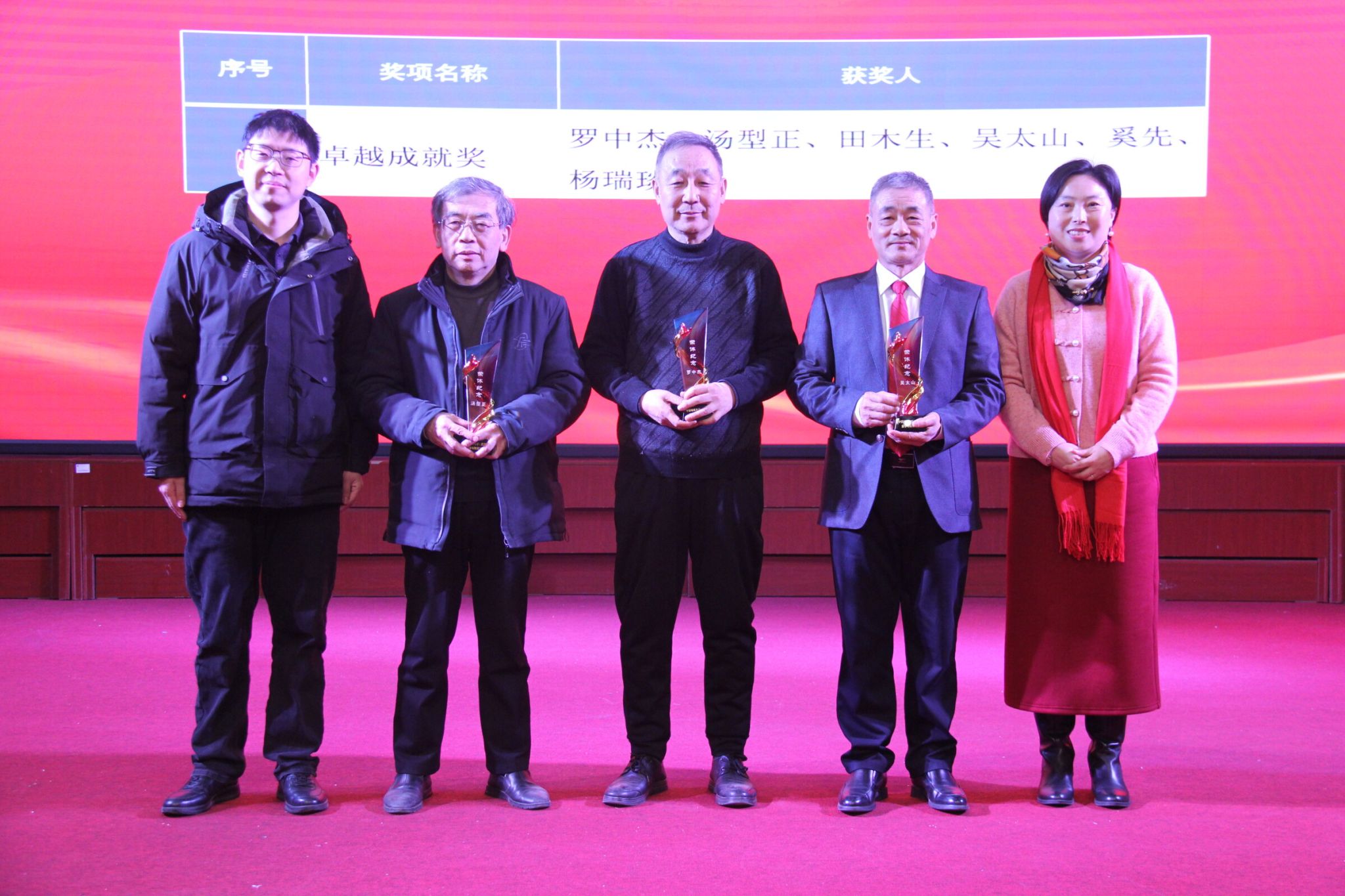 第二阶段,是以 “共话公司情,同启新征程” 为主题的年度表彰和茶话会活动。该阶段由王希成主持,旨在表彰2024年度在公司党建、教学、科研、服务育人、工会活动等方面表现突出的先进集体和优秀个人。公司特别为2024年光荣退休的罗中杰、汤型正、田木生、吴太山、奚先、杨瑞琰等六位老师举办了温馨的荣休仪式,书记、经理为他们颁发了“卓越成就奖”纪念奖杯,代表全院师生对六位荣休教师多年来倾心奉献、辛勤耕耘表达诚挚感谢。荣休教师代表吴太山老师发表感言,他对公司在学科专业建设上取得的突破性进展表示热烈祝贺,对公司给予荣休教师的关怀表达了深深感激,并深情承诺退休后仍将心系公司,持续关注和支持公司的发展。