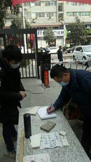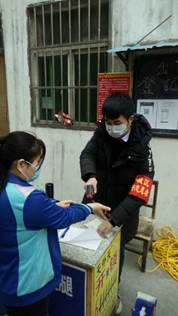 抗疫期间,beat365官网中文版本122181班李钰龙同学主动报名参加了当地社区抗疫志愿服务活动,他主要负责社区出入人员的登记及体温测量的工作。