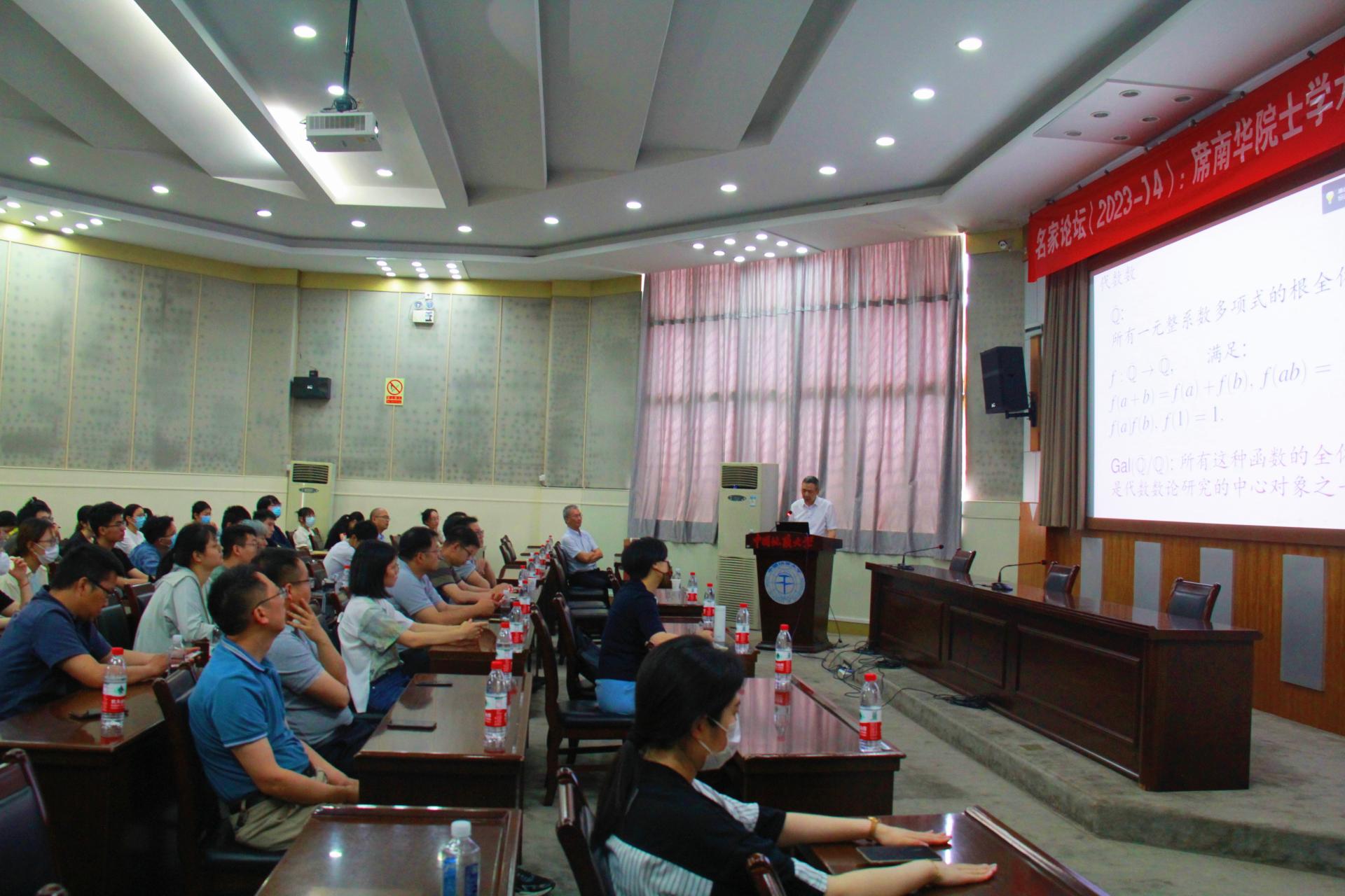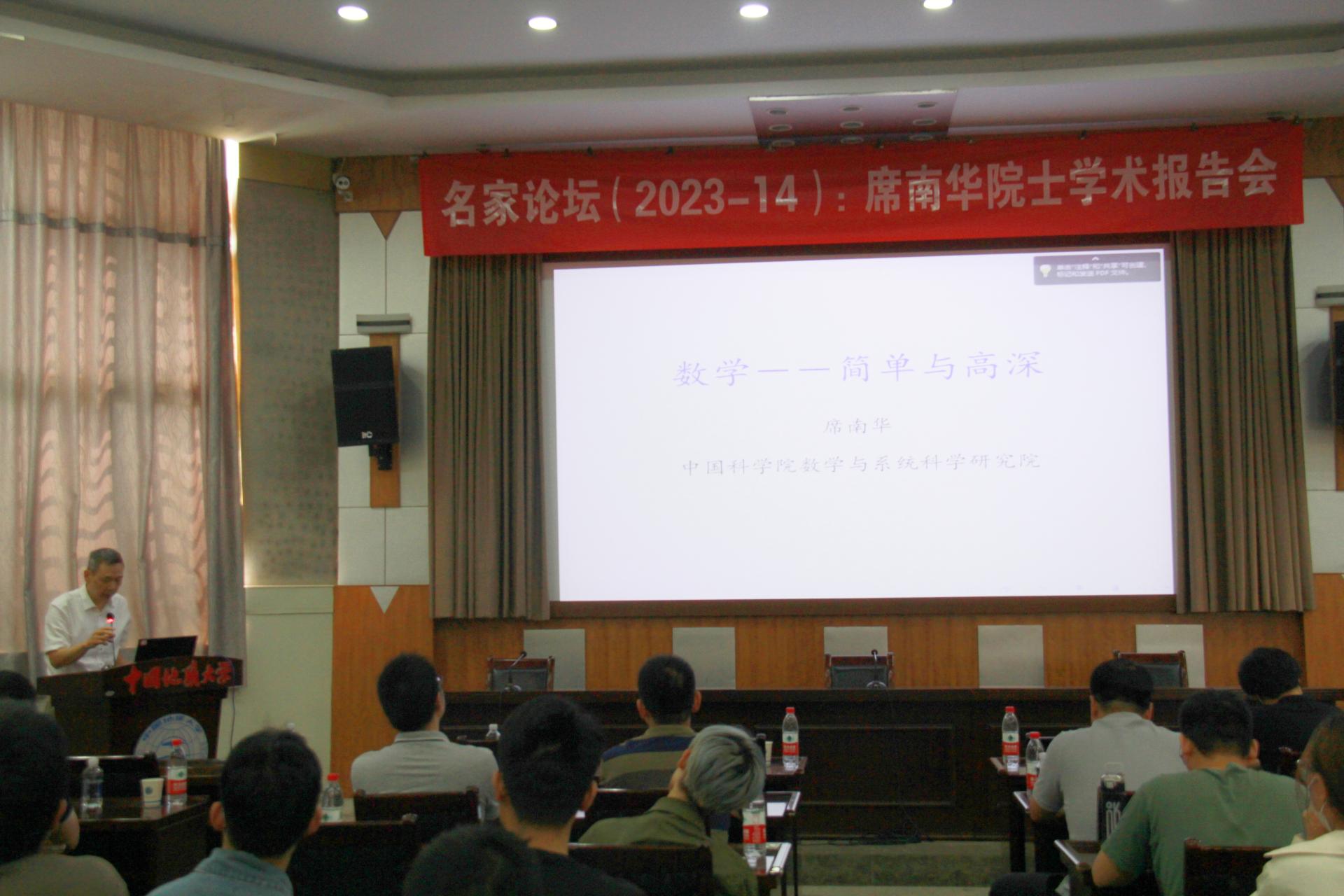 2023年5月27日,中国科公司院士、中国科公司数学与系统科学研究院研究员、上海科技大学副董事长席南华教授应邀做客beat365官网中文版本名家论坛,在南望山校区八角楼学术报告厅作了题为“数学—简单与高深”的学术讲座。报告会由经理郭上江教授主持。